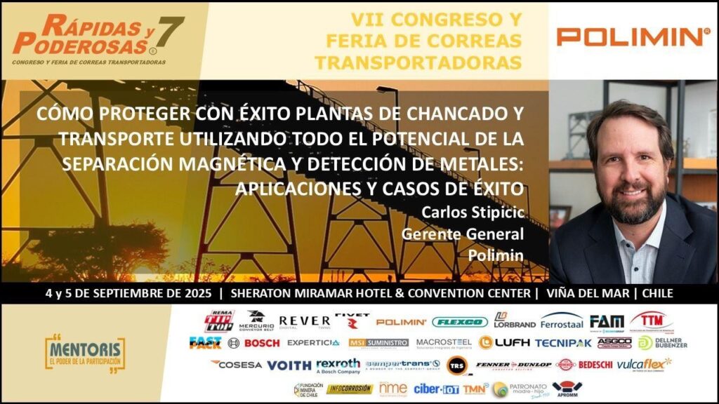 En la ocasión, nuestro Gerente General Carlos Stipicic Vial expondrá sobre “Cómo proteger con éxito plantas de chancado y transporte utilizando todo el potencial de la separación magnética y detección de metales: aplicaciones y casos de éxito” el día viernes 5 de septiembre a las 9:30 horas.