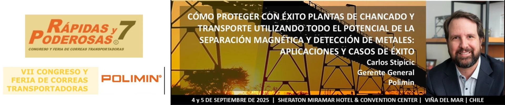 Durante los días 4 y 5 de septiembre se realizará el VII Congreso y feria de correas transportadoras “Rápidas y Poderosas 7” en Sheraton Miramar Hotel & Convention Center, Viña del Mar; organizado por Mentoris Congresos Técnicos el cual tiene como foco dar a conocer las últimas tecnologías y buenas prácticas para el diseño, operación y mantención de sistemas de transporte por correas.